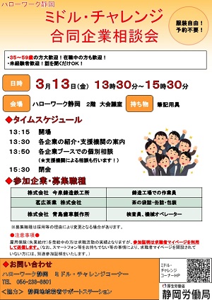 ・3月13日「ミドル・チャレンジ合同企業相談会」