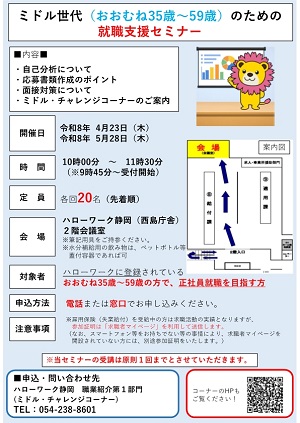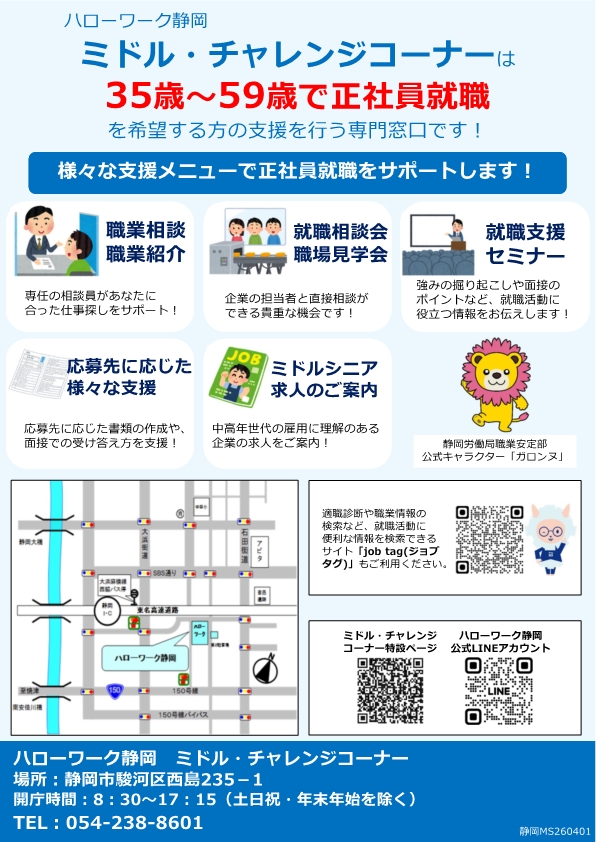 - 静岡労働局 ハローワーク静岡 ミドル・チャレンジコーナー