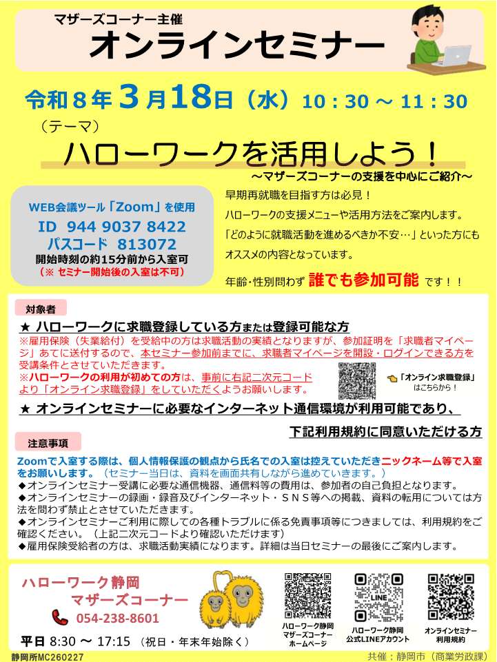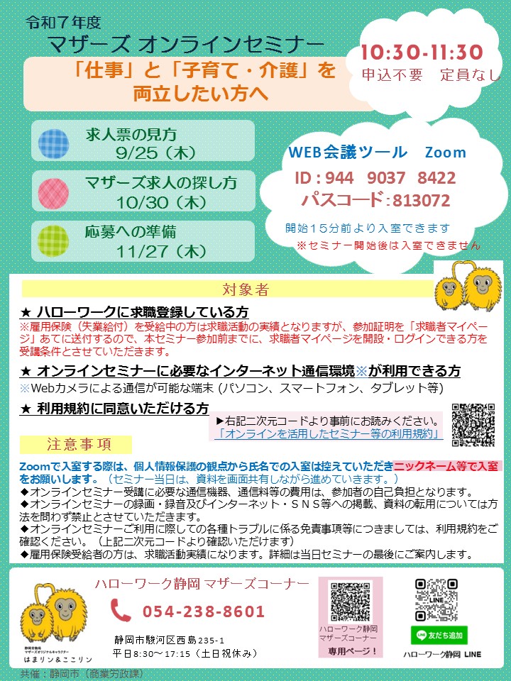 - 静岡労働局 ハローワーク静岡 マザーズコーナー