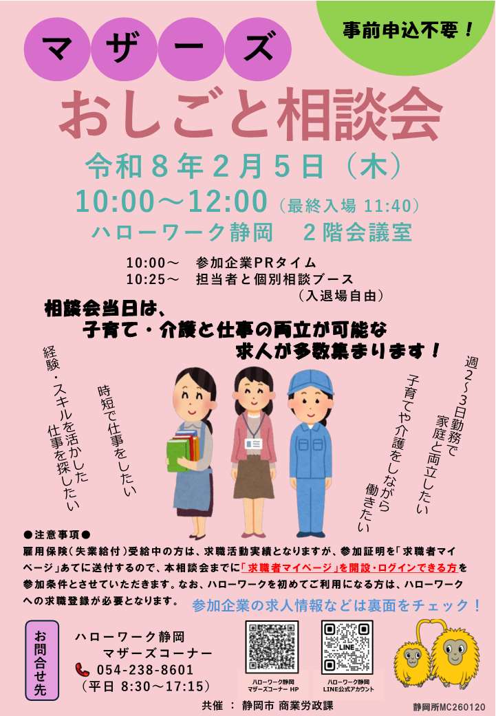 ● 令和8年2月5日(木)開催 「マザーズ おしごと相談会」 参加企業決定!