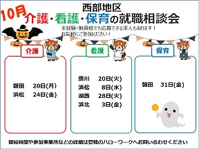| 静岡労働局管内の3つのハローワーク(静岡・浜松・沼津)では、看護・介護・保育・運輸・建設・警備分野の専門的な支援窓口として、「人材確保対策コーナー)」を設置し、様々な支援サービスを実施しております。 | ![]() |