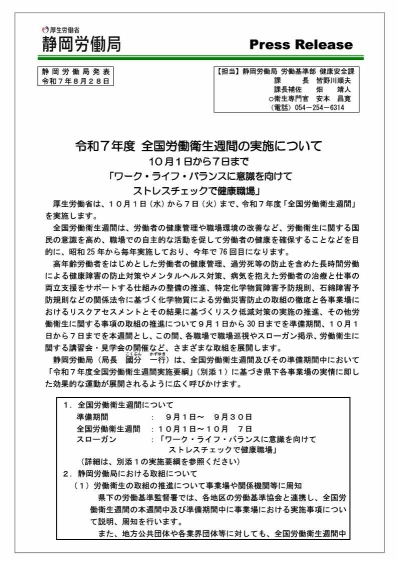 資料番号1 令和7年度全国労働衛生週間実施要綱