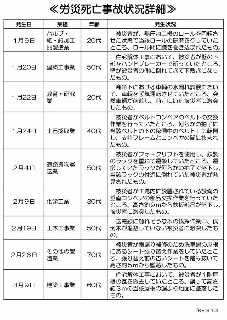 令和8年1月9日以降9件もの労災死亡事故が発生しています。