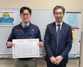 厚生労働省労働基準局長 建設事業無災害表彰状を贈呈しました