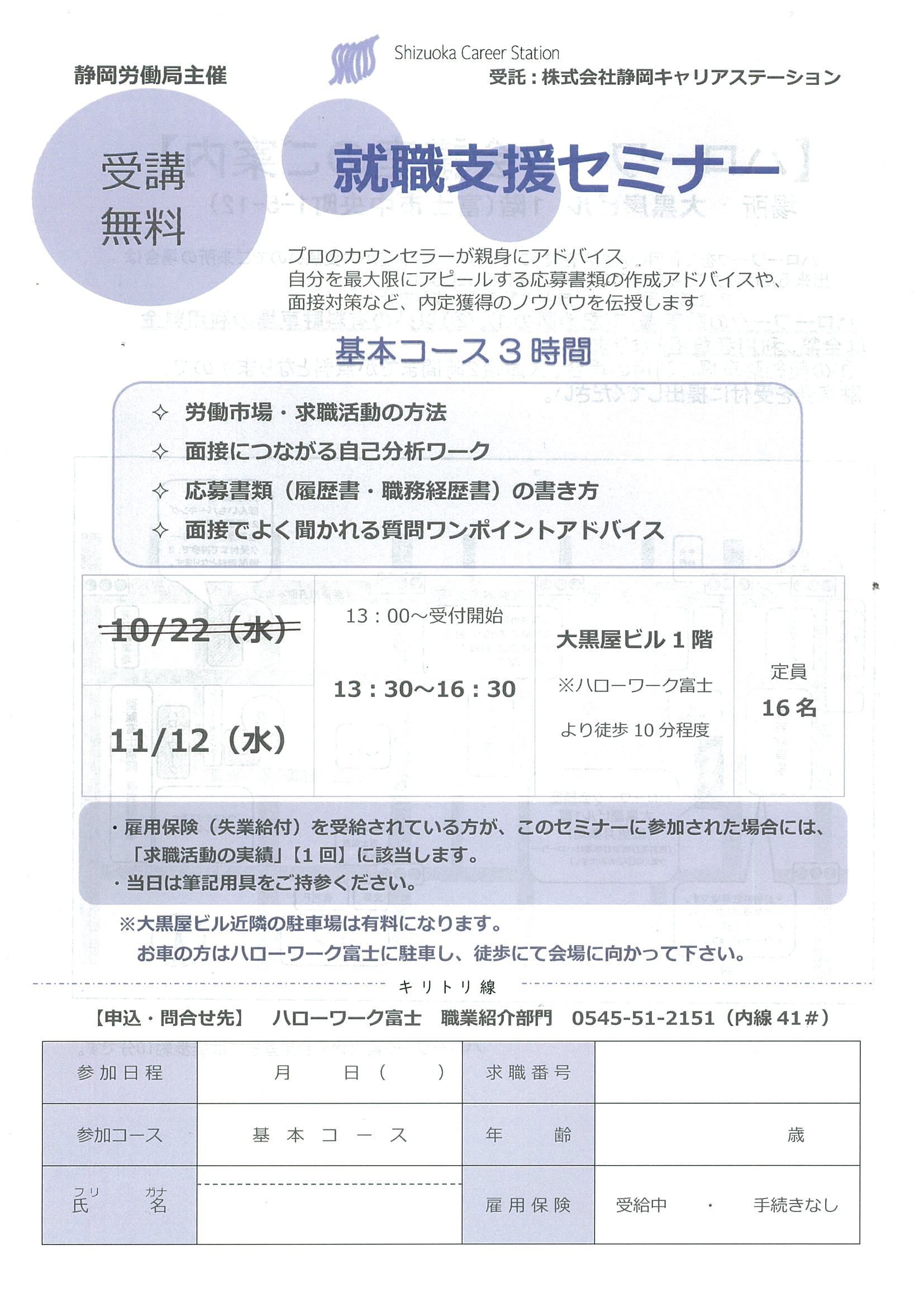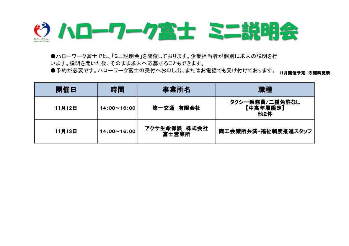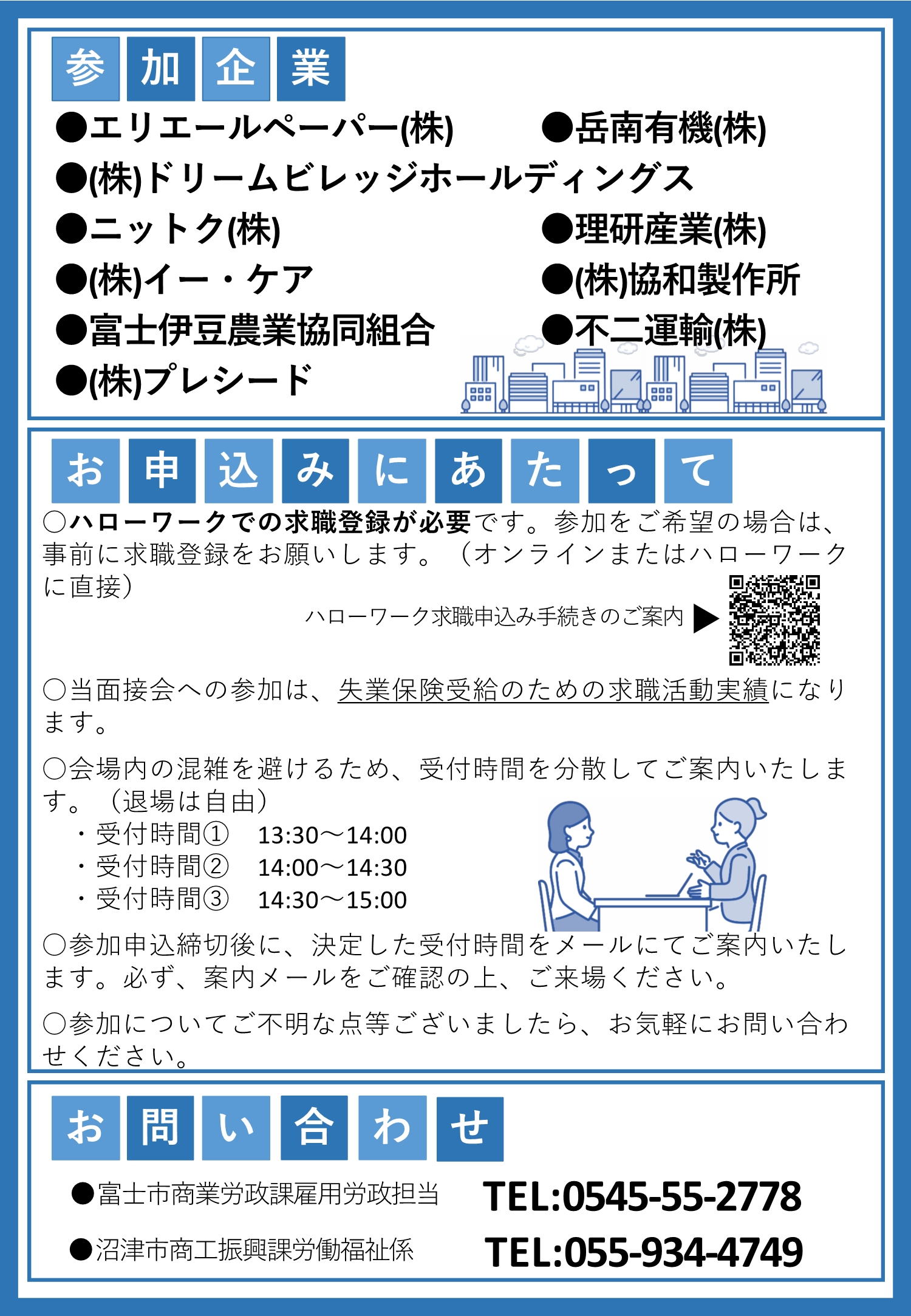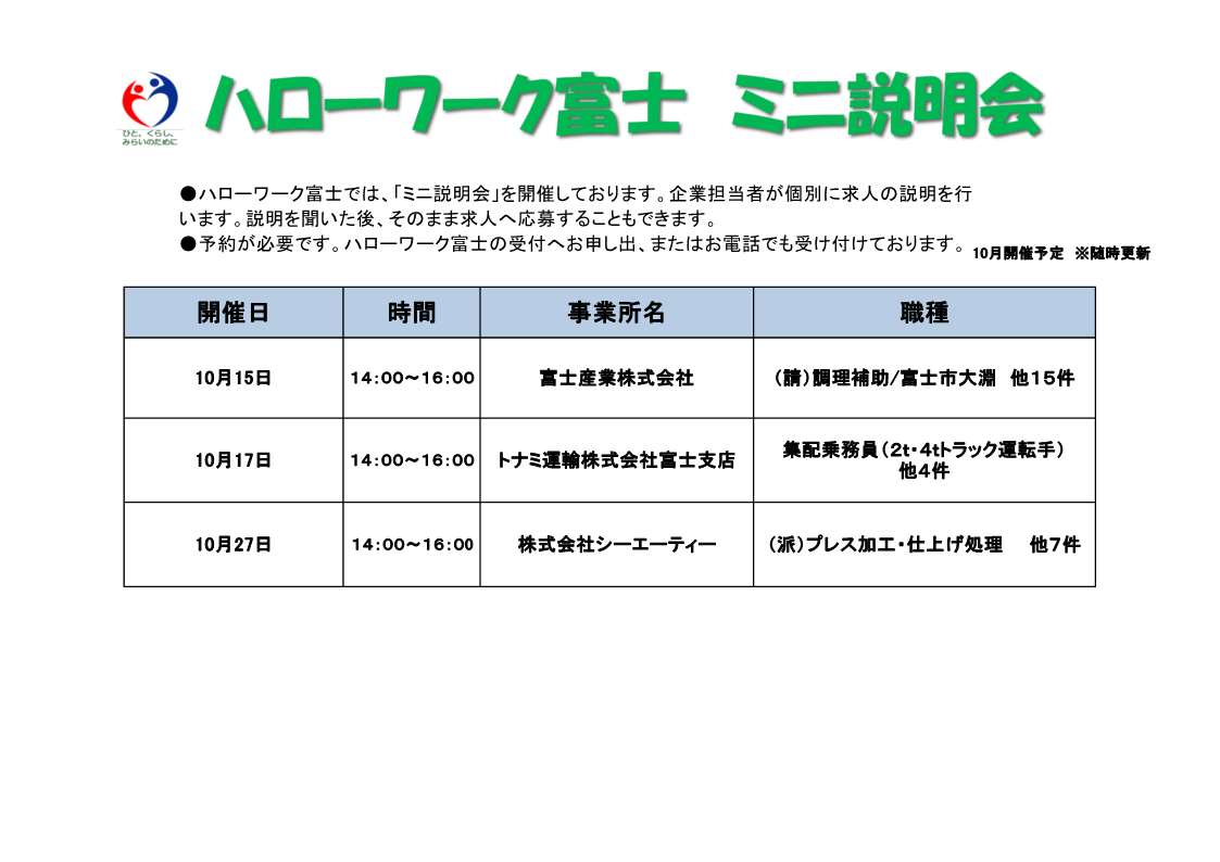 - ハローワーク富士 各種イベント(企業説明会・面接会等)