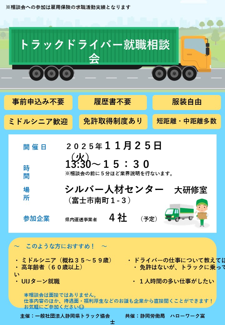 タップすると詳細を確認できます。・【11月25日】トラックドライバー就職相談会 ※参加企業は決まり次第掲載します