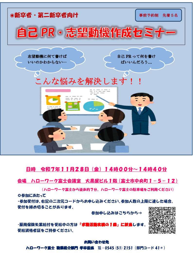 ・【11月28日】※新卒者・既卒者対象 自己PR・志望動機作成セミナー →参加申込みはこちら