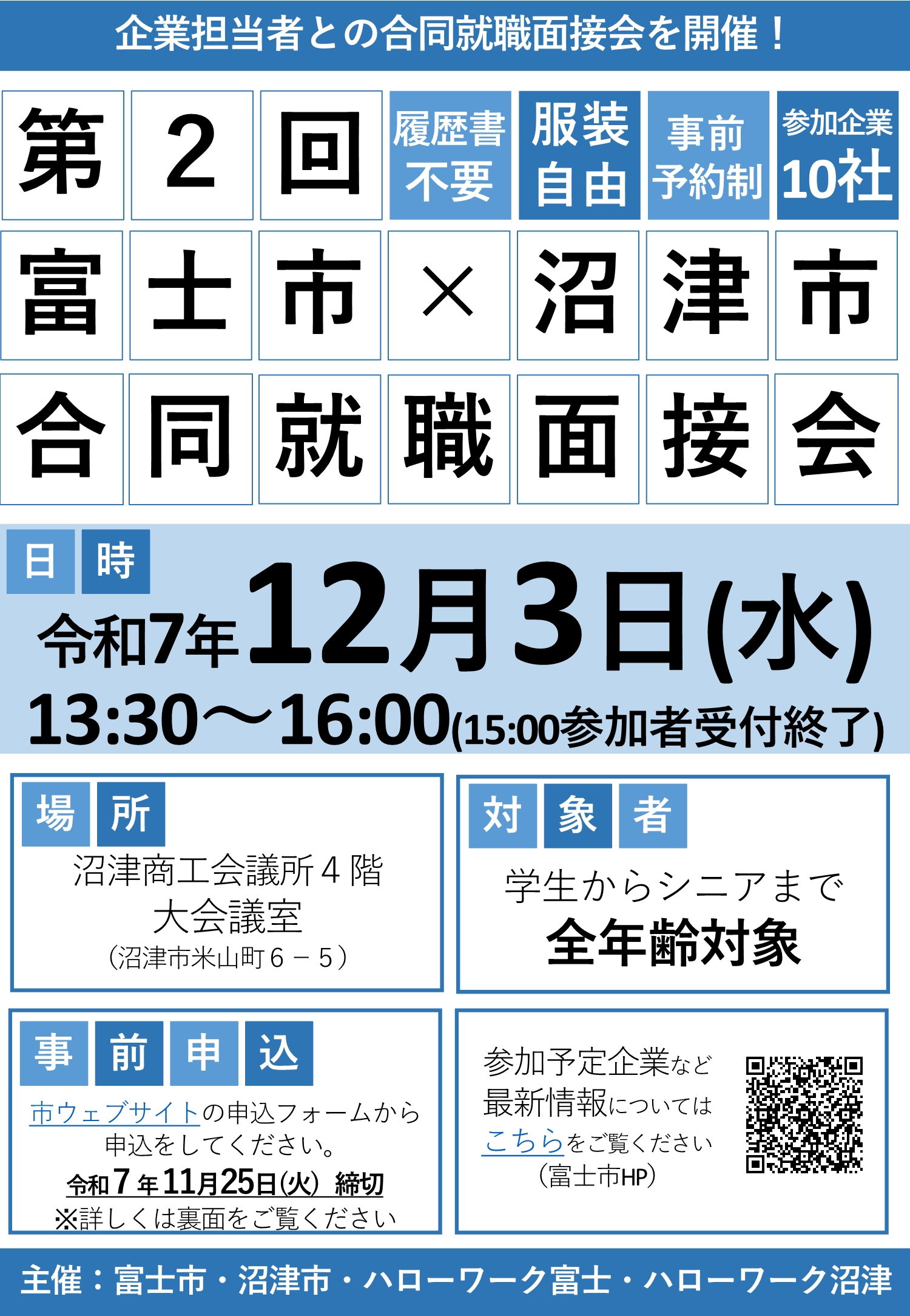 ・【12月3日】第2回富士市×沼津市 合同就職面接会 参加企業などはこちら
