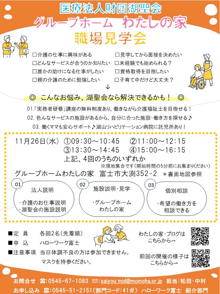 ・【11月26日】医療法人財団湖聖会 グループホーム わたしの家 職場見学会