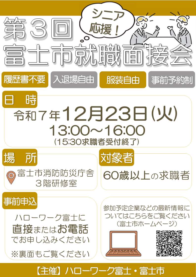 【12月23日開催】※60歳以上の方限定 第3回富士市就職面接会 参加企業はこちら