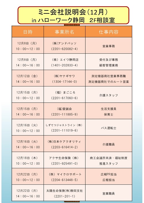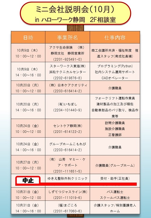 - ハローワーク静岡|各種イベント情報(お仕事を探している方向け)