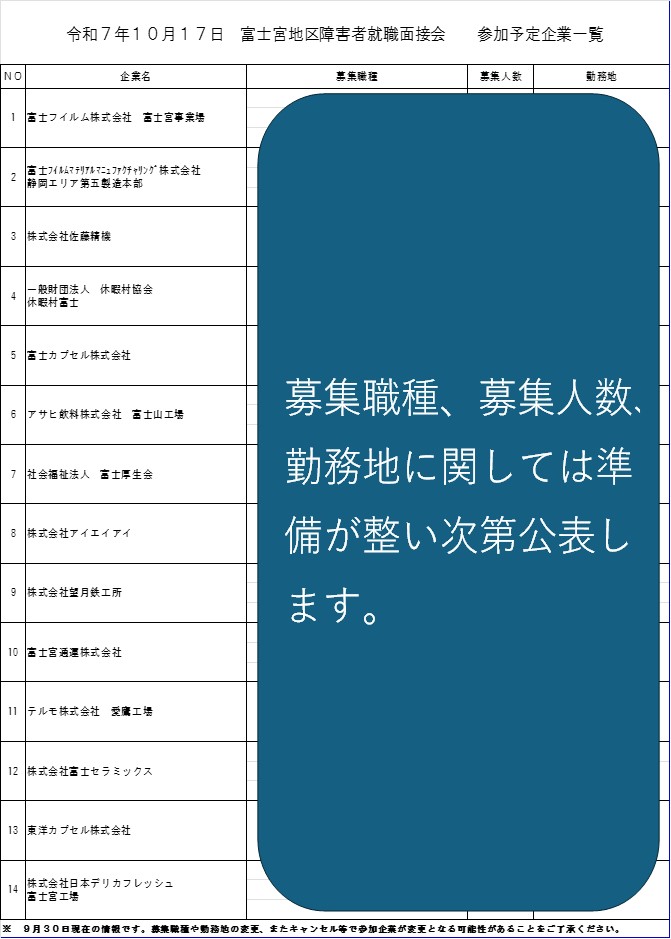 ◆【障害者向け】就職面接会(令和7年9月5日開催)