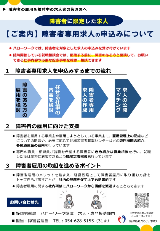 ハローワークでは、障害者を対象とした求人の申込みを受け付けています。