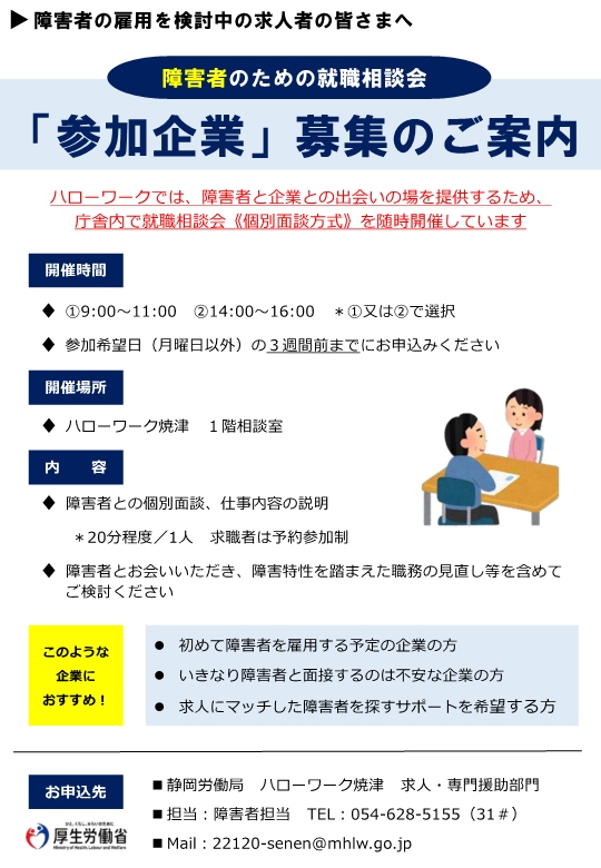 〇【ご案内】障害者専用求人の申込みについて 〇障害者のための就職相談会「参加企業」のご案内