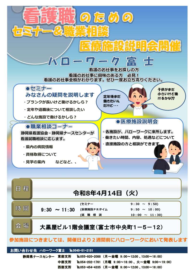 ・【4月14日】看護職のためのセミナー&職業相談 医療施設説明会