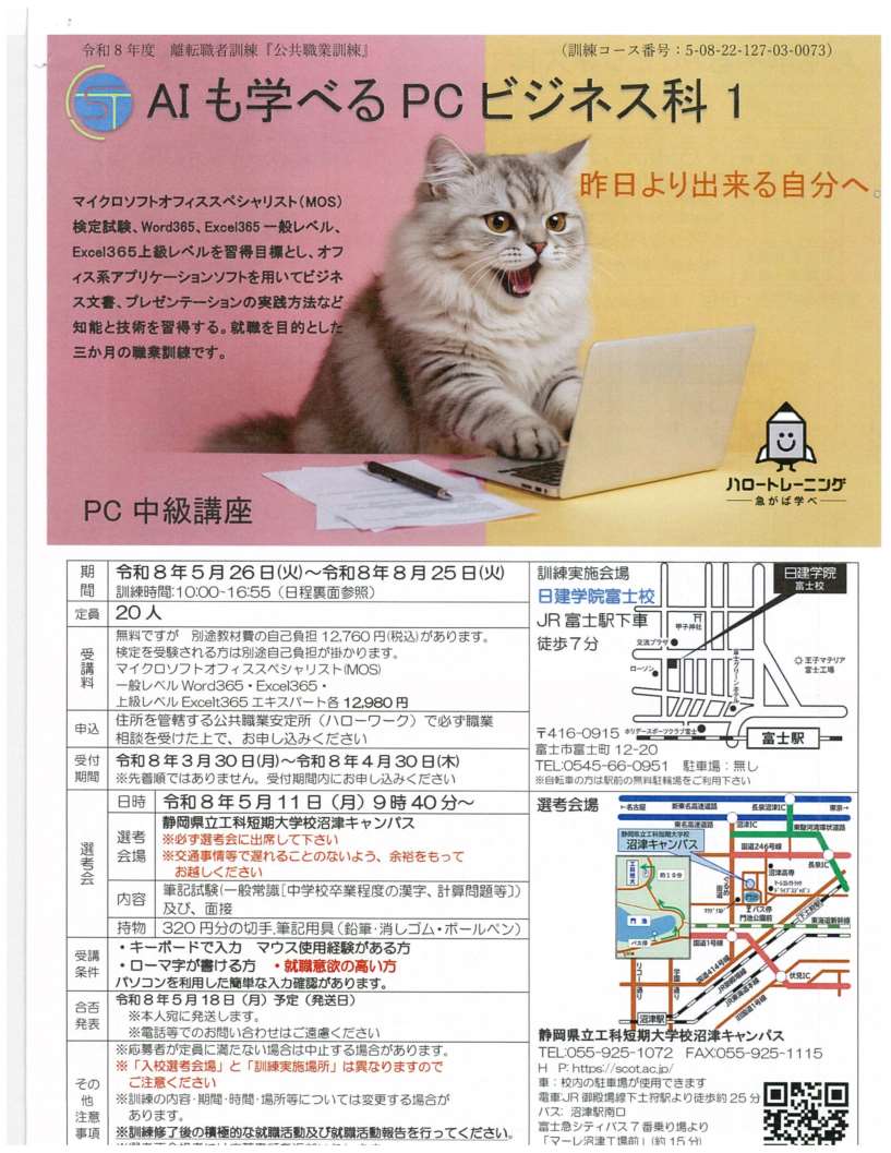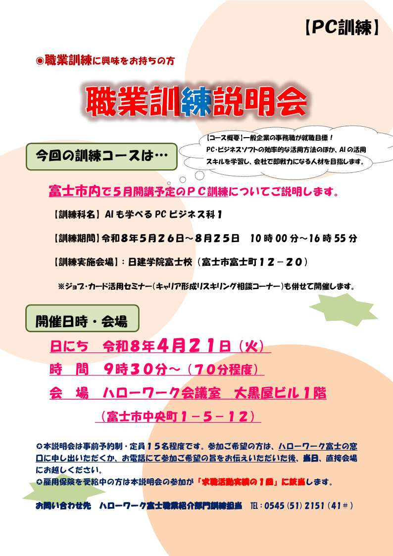 ・【4月21日】職業訓練説明会 AIも学べるビジネスPC科