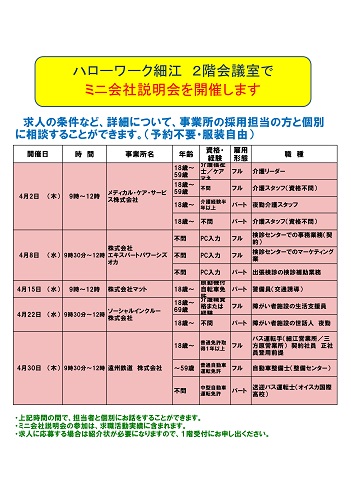 4月開催 福祉の仕事会社相談会