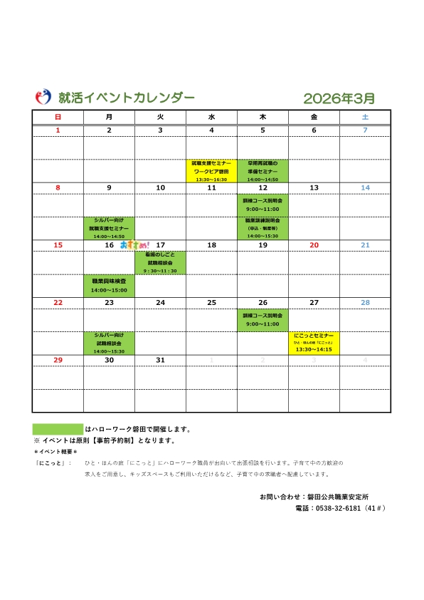 ハローワーク磐田 就活イベントカレンダー