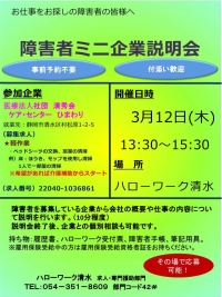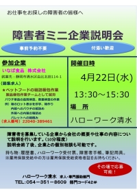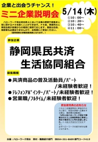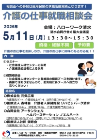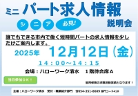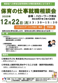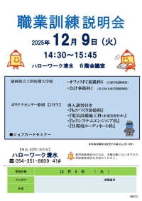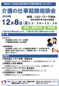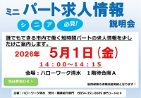 問い合わせ先:ハローワーク清水 職業紹介部門 電話:054-351-8609 部門コード41#