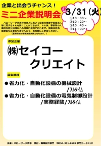- イベント情報(企業説明会・就職相談会・職場見学会・訓練説明会他)
