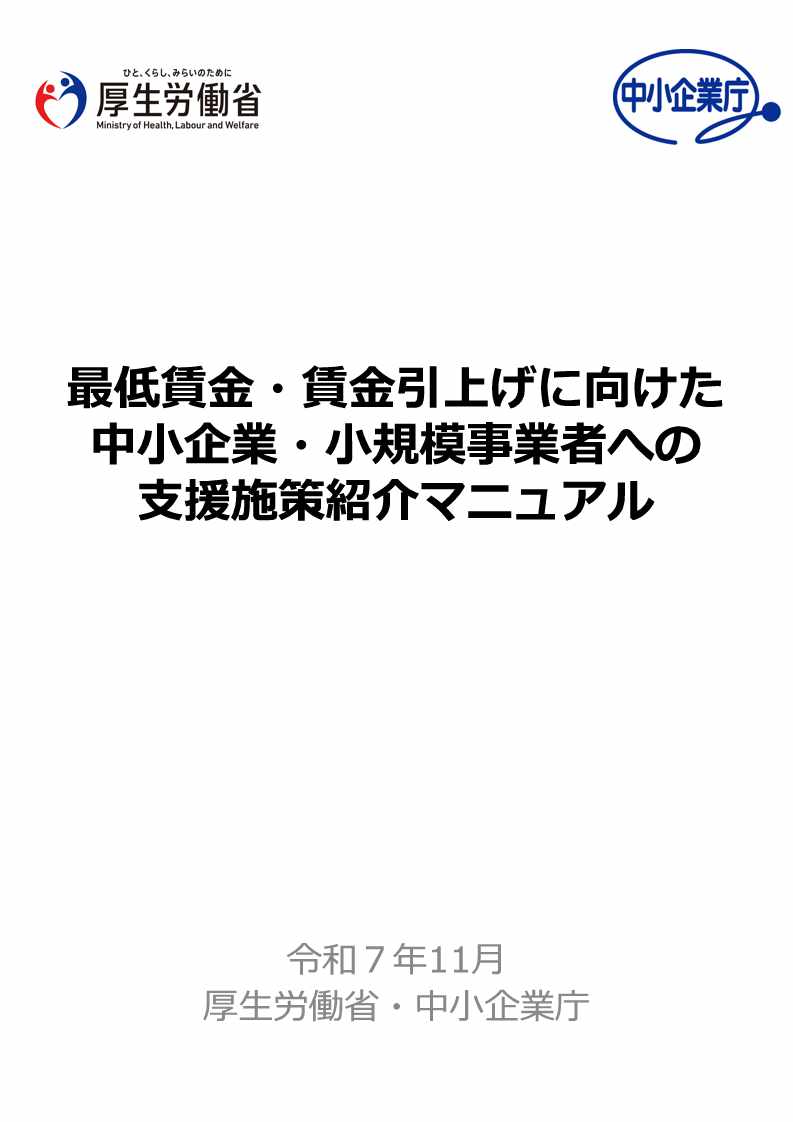 ![]() 最低賃金・賃金引上げに向けた中小企業・小規模事業者への支援施策紹介マニュアル【R7.11】(PDF) |
