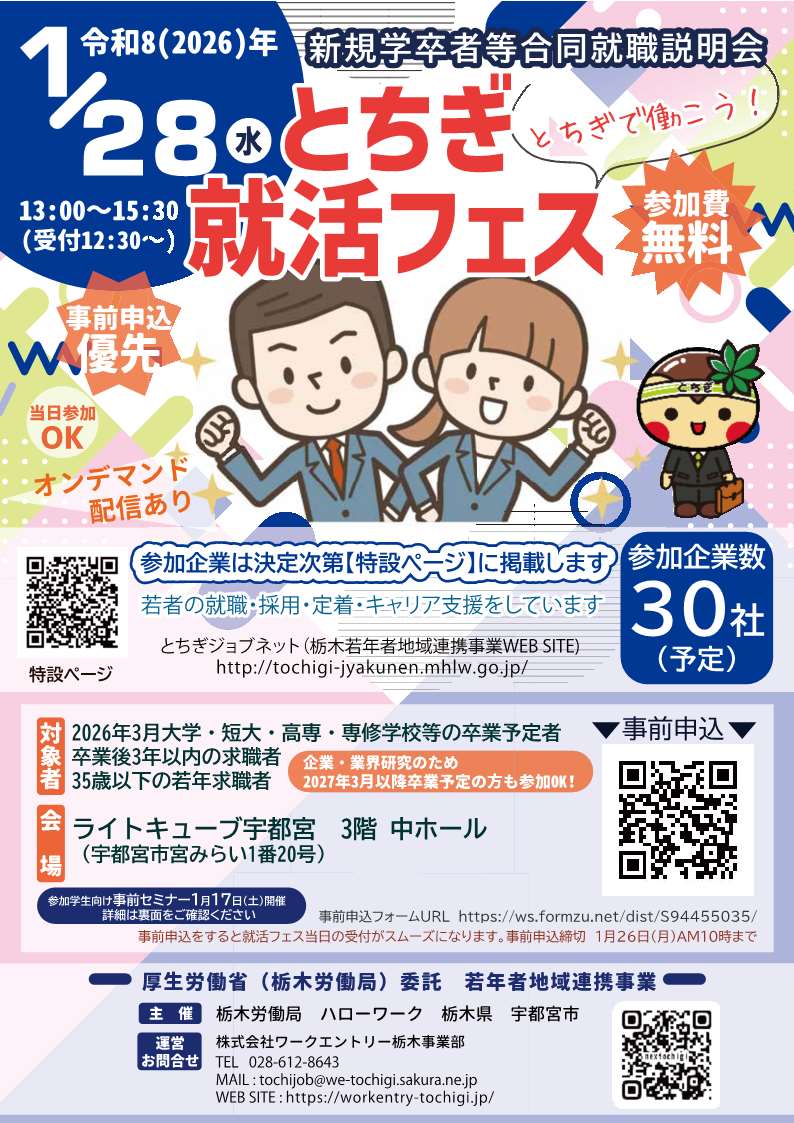 【安定】新規学卒者等合同就職説明会「とちぎ就活フェス」のご案内