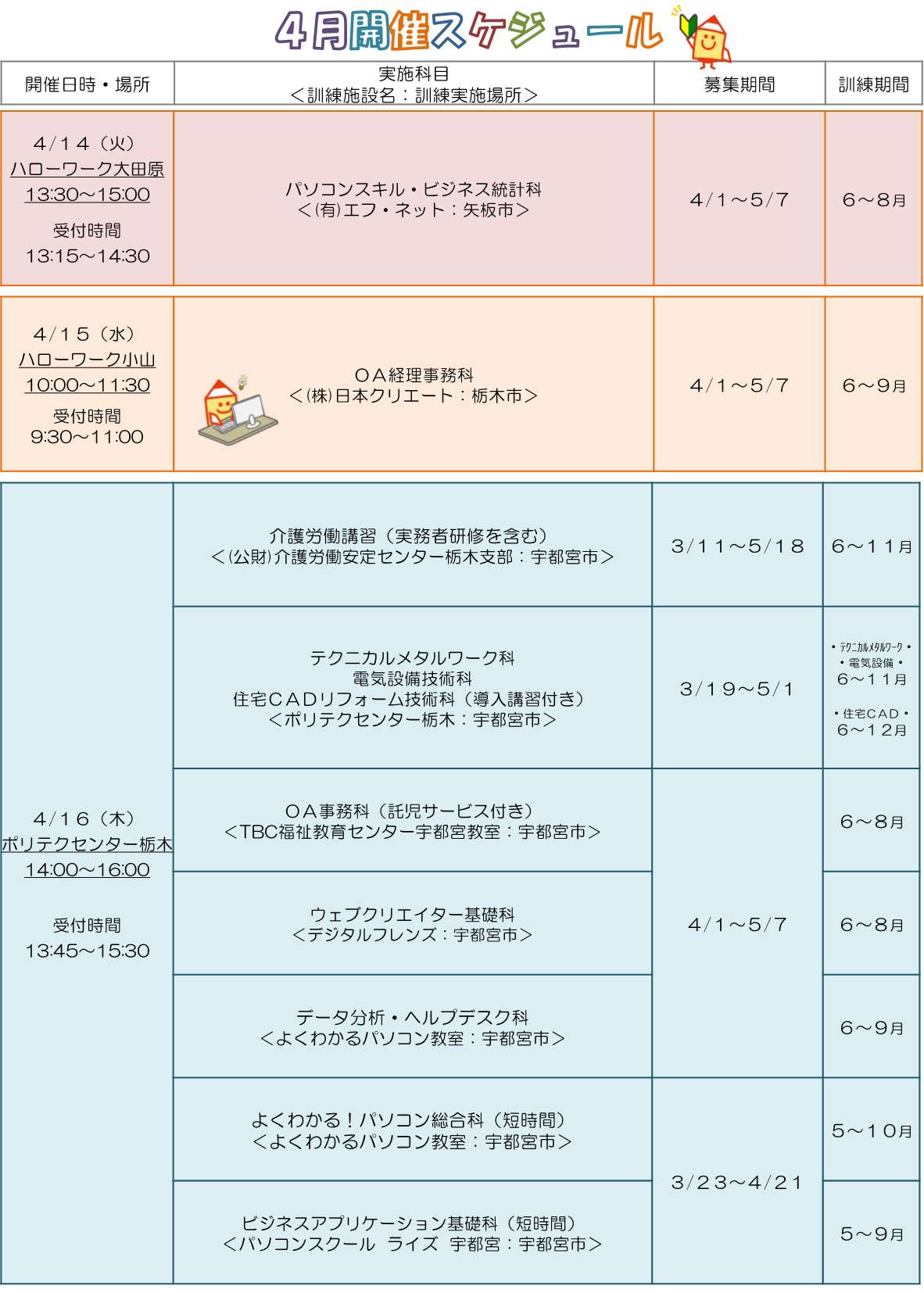 職業訓練説明会に関するご案内