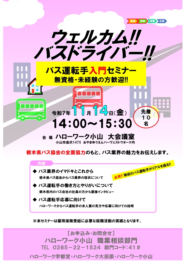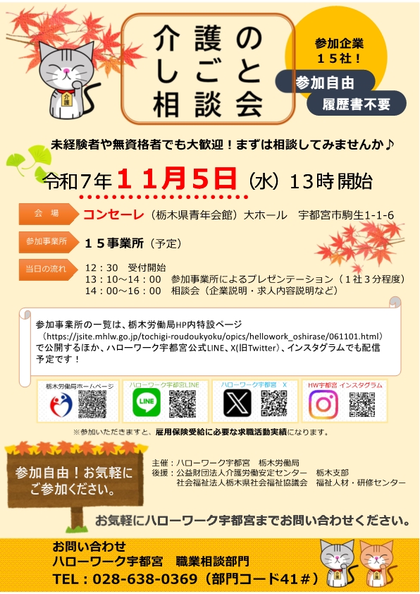 ハローワーク宇都宮より、10月開催のイベントについてお知らせします。
