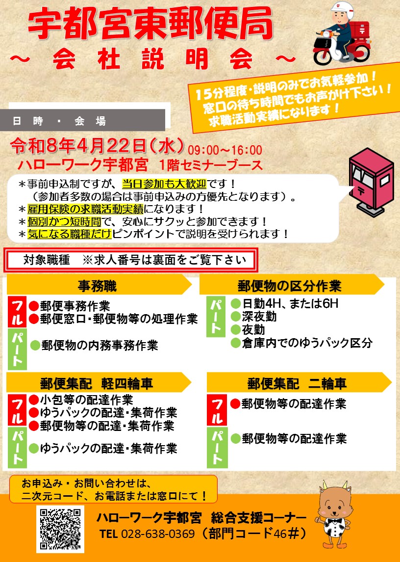 ハローワーク宇都宮より、4月開催のイベントについてお知らせします。