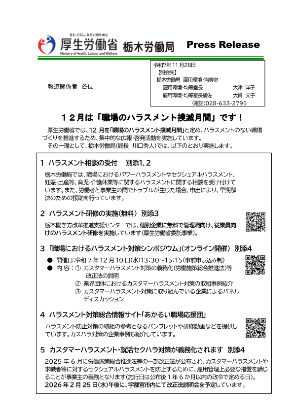 12月は「職場のハラスメント撲滅月間」です!