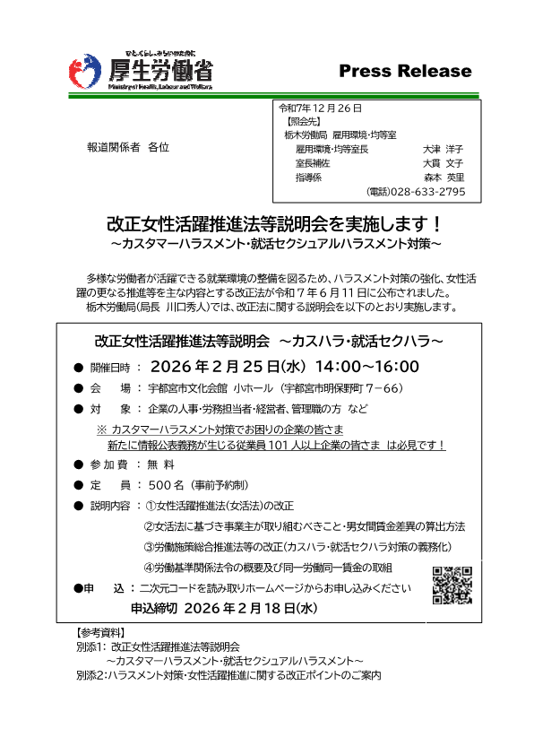 改正女性活躍推進法等説明会を実施します!