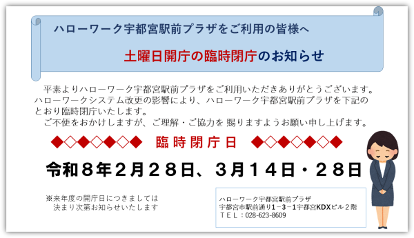 ハローワーク宇都宮駅前プラザ 宇都宮市駅前通り1-3-1KDXビル2階