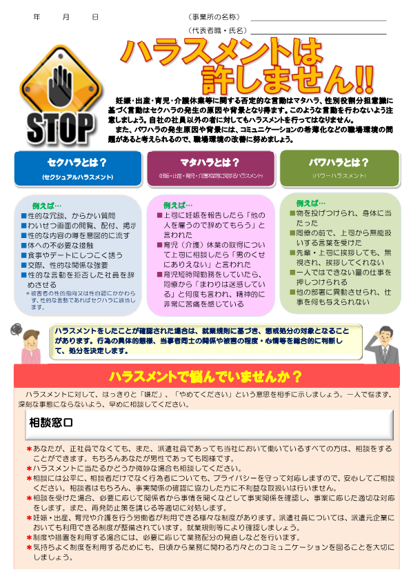 職場におけるハラスメント対策は、すべての事業主の義務です