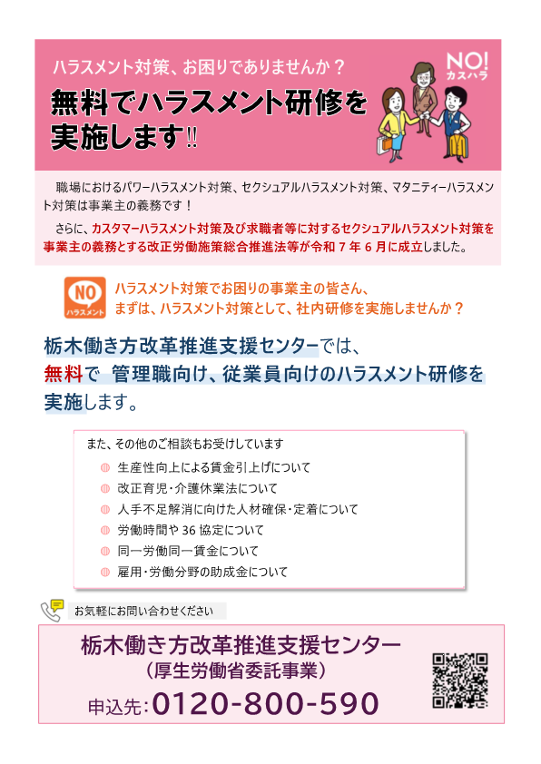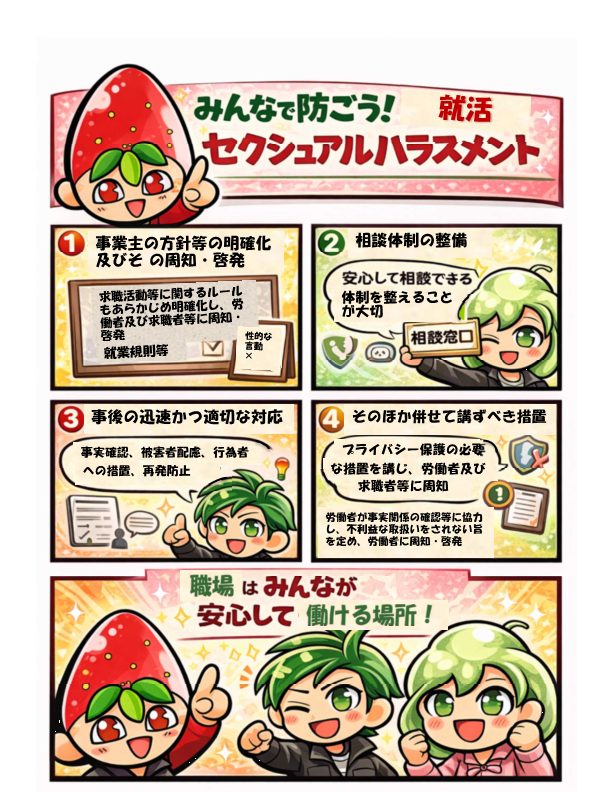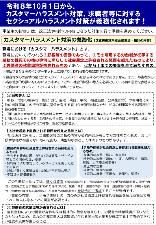 なお、令和8年10月1日から事業主に義務付けられるカスハラ対策、就活セクハラ対策については、追って掲載予定です。