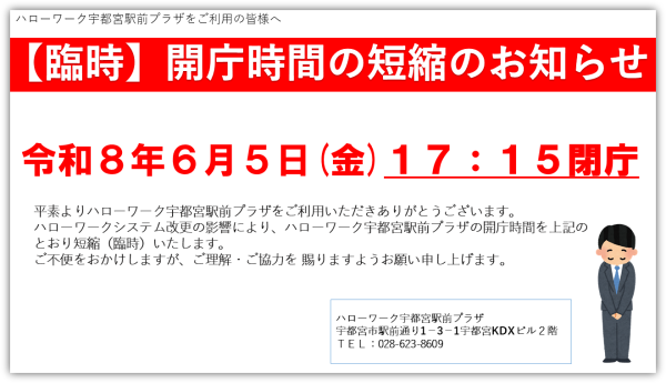 ハローワーク宇都宮駅前プラザ 宇都宮市駅前通り1-3-1KDXビル2階