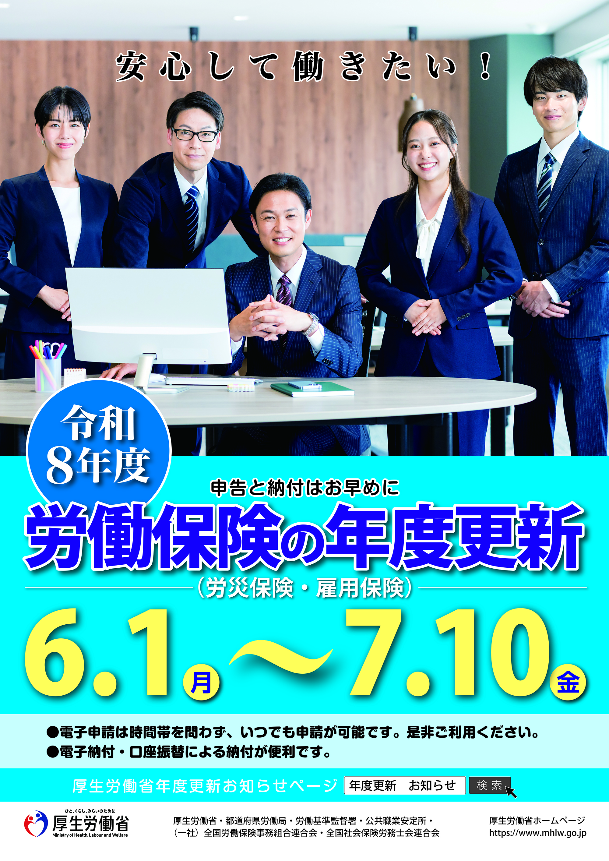 労働保険の手続きは、カンタン・便利な電子申請・電子納付で!!