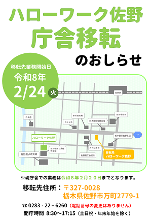 令和8年2月24日~ ハローワーク佐野が庁舎移転をします