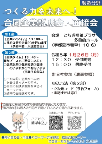 ◆つくる力を未来へ!製造分野 合同企業説明会・面接会 を開催します◆