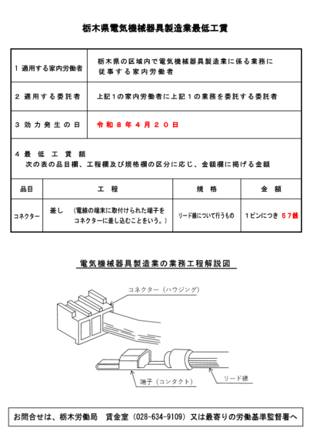 令和8年4月20日より、栃木県電気機械器具製造業の最低工賃が改正されます!