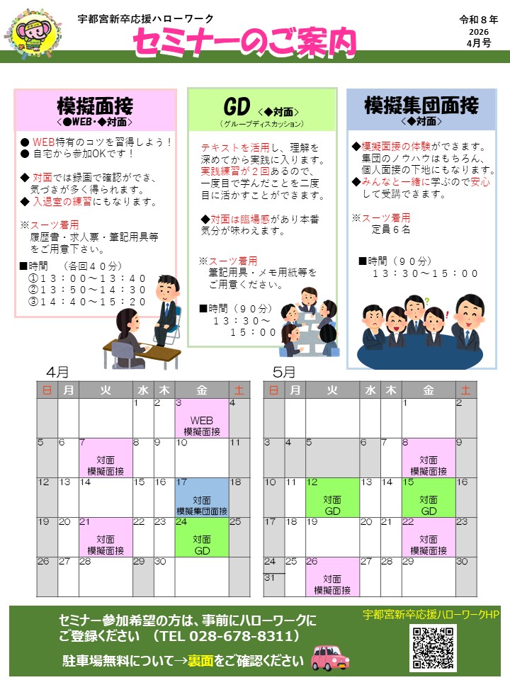 宇都宮新卒応援ハローワーク(028-678-8311)までお電話ください。
