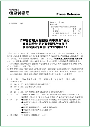 ↓↓詳しくはこちらをご覧ください↓↓ (画像をクリックするとリーフレットが開きます) (PDF:905KB) ◆ お問い合わせ先 ◆ 徳島労働局職業安定部 職業対策課 障害者雇用担当 TEL :088-611-5387