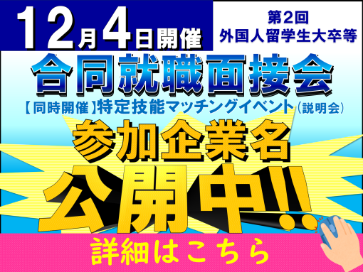 【2026年春】留学生インターンシップ等の企業エントリー10/30開始予定!! 続報をお待ちください。