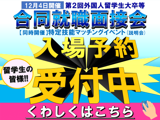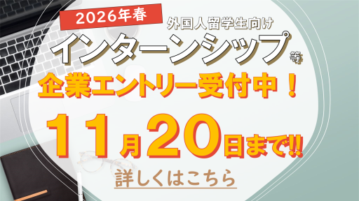 【2026年春】留学生インターンシップ等の企業エントリー受付中!11月20日まで!