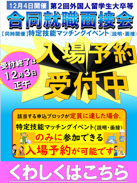 【2026年春】留学生インターンシップ等留学生エントリー受付中!学校への提出期限は12月17日です。
