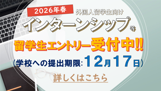 【2026年春】留学生インターンシップ等留学生エントリー受付中!学校への提出期限は12月17日です。