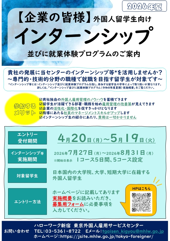 インターンシップに準じて募集及びエントリー等を行うものとします。
