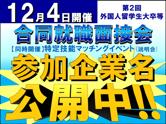 【12月4 日開催】外国人留学生大卒等合同就職面接会及び特定技能マッチングイベント(説明会)