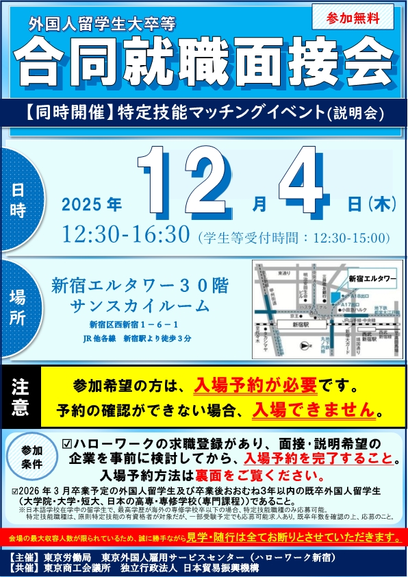 【12月4日開催】外国人留学生大卒等合同就職面接会及び特定技能マッチングイベント(説明会)