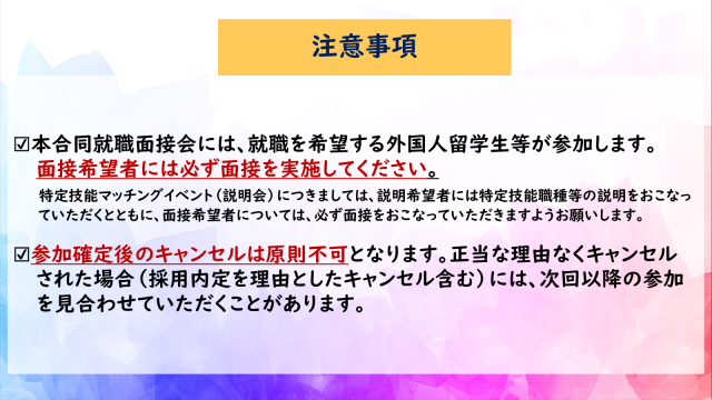 2026年3月9日以降、当センターのホームページに 参加決定企業名を掲載します。 掲示されていない場合は否となります。