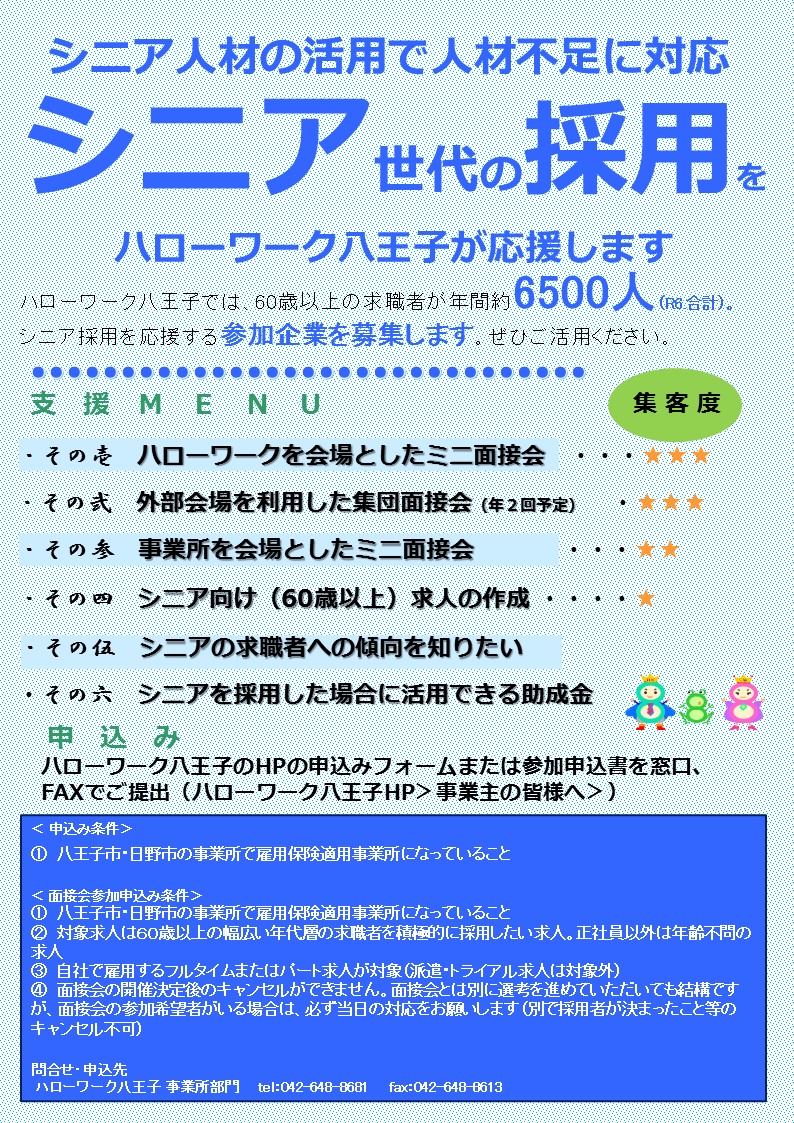 【参加企業募集】シニアの採用に意欲的な企業をハローワークが応援します!